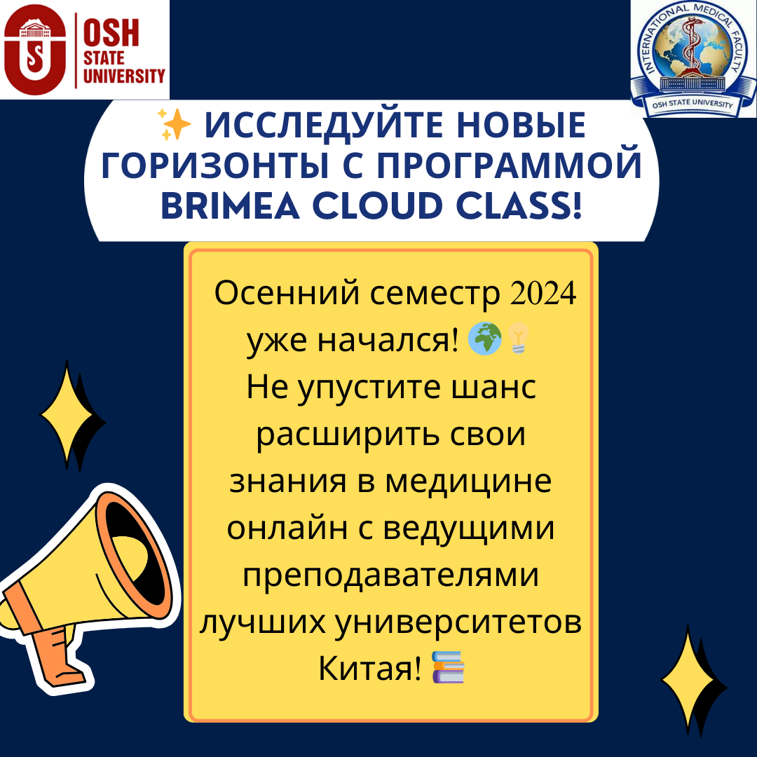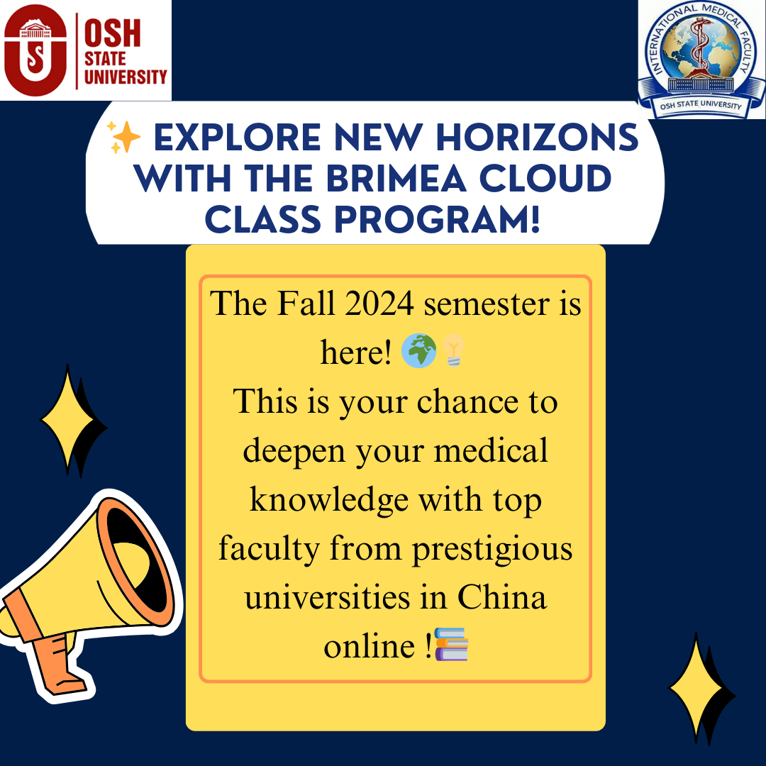 Студенты международного медицинского факультета ОшГУ проходят онлайн академическую мобильность с применением дистанционных образовательных технологий благодаря сотрудничеству с Belt & Road International Medical Education Alliance (BRIMEA)!