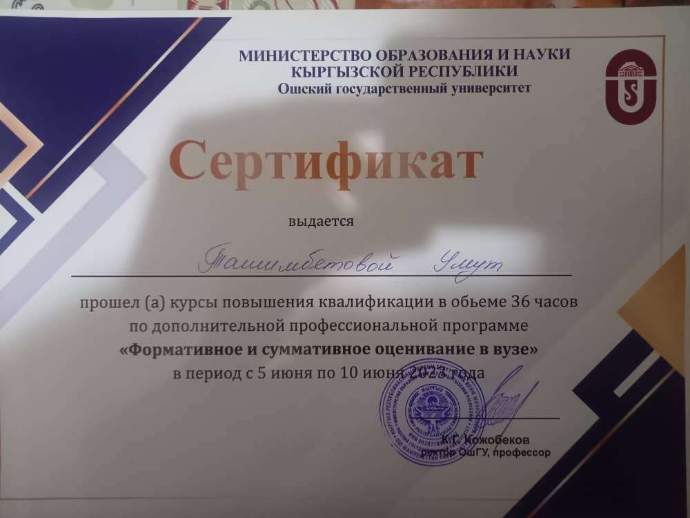 2. Сертификат "Заманбап технологиядагы жогорку технологиялар", 2023