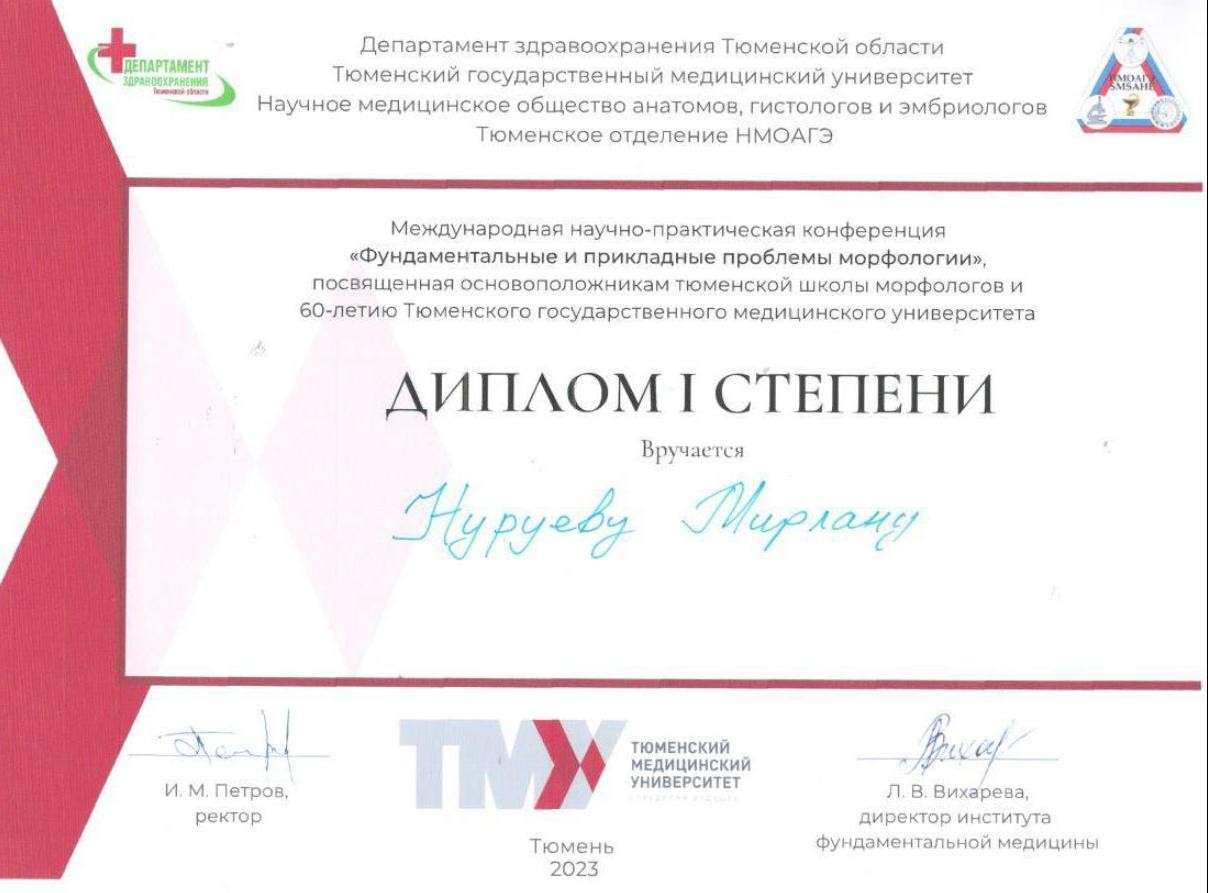 16. Диплом I степени "Фундаментальные и прикладные проблемы морфологии" 01.05.2023