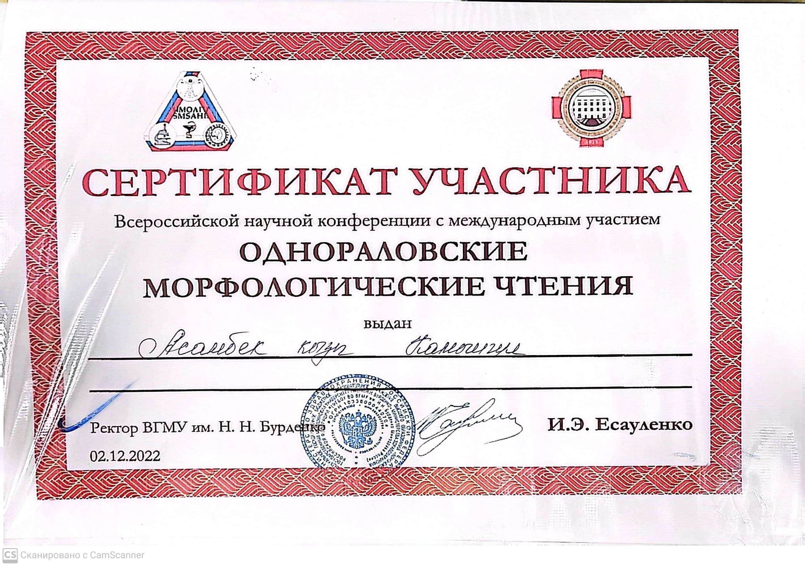 8. Сертификат "Однораловские морфологические чтения", 02.12.2022