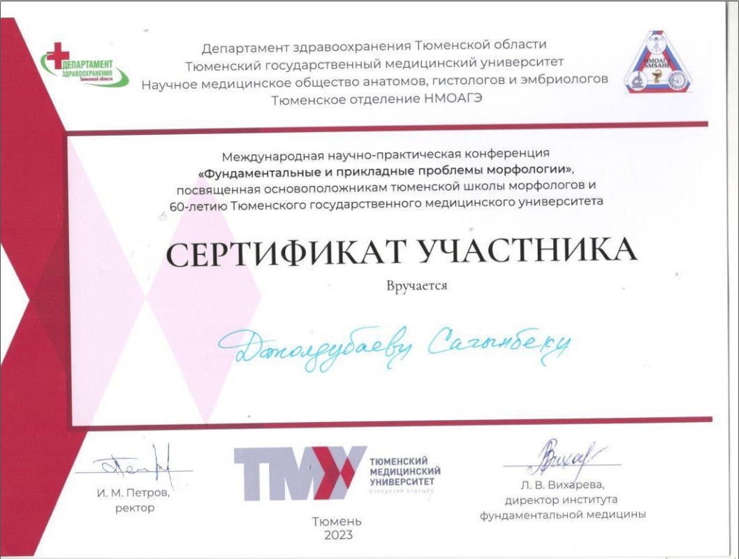 18. Сертификат "III клинико-морфологические аспекты фундаментальных" 15.13.2023