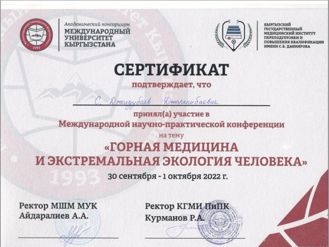 10. Сертификат "Горная медицина и экстремальная экология человека" 01.10.2022