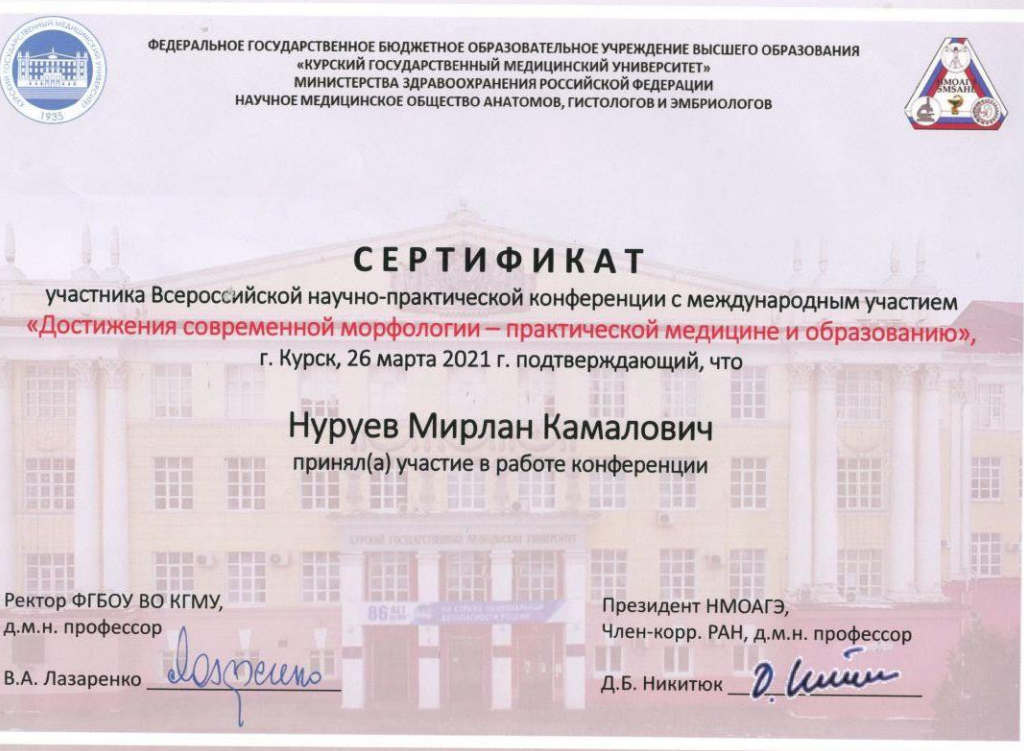 3. Сертификат "Достижения современной морфологии" 26.03.2021